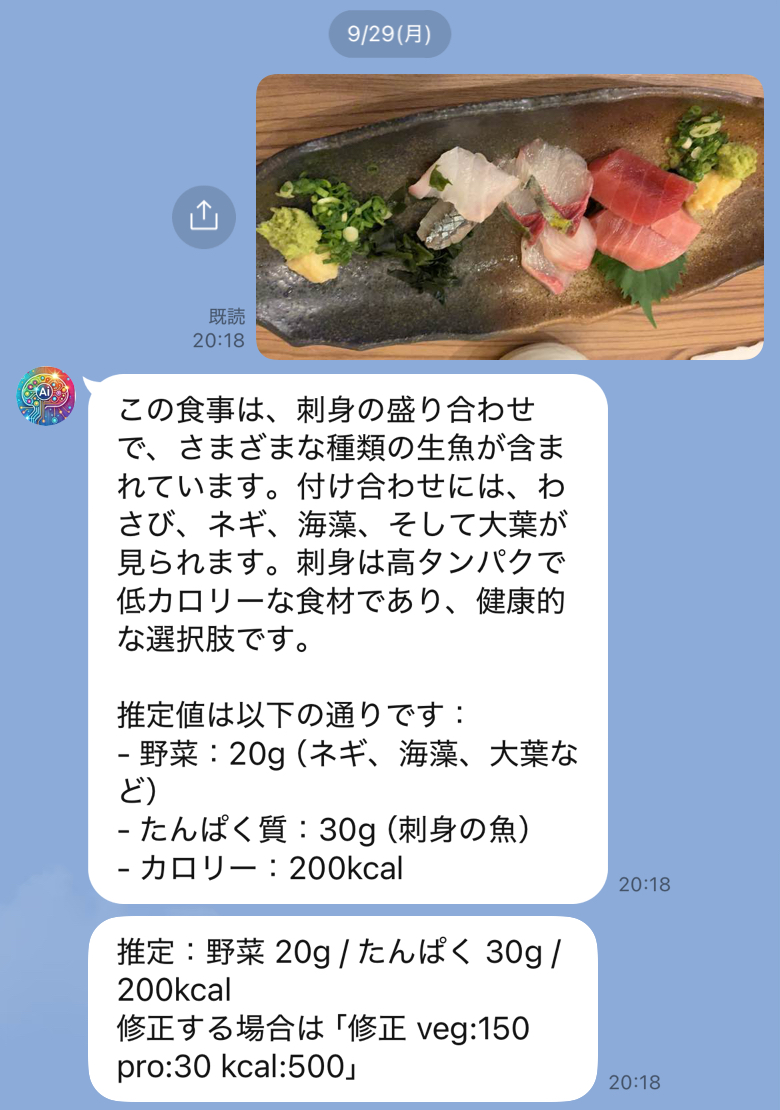 第一弾の食習慣サポートLINE Botは、写真を送るだけで